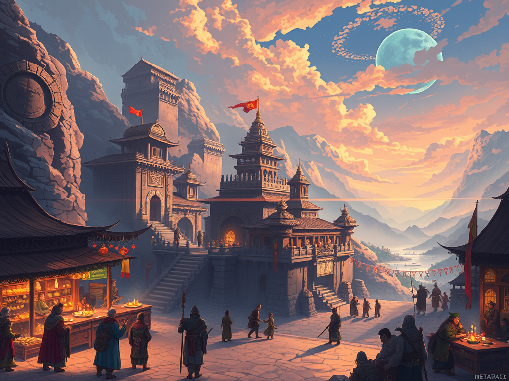 Metaki is a faction trade hub located at coordinates [-570|-722] in the region of Azura, serving as the spiritual heart of the Kadu people, the spiritual ancestors of the Windseekers. Associated with the Kadu faction, Metaki is renowned for its strong traditions and unique local customs, including ritualized greetings involving warriors displaying strength and respect. The city blends fortress-like defenses with vibrant markets, its stone-walled compounds nestled amidst chill mountain air and open vistas. Metaki stands as a pilgrimage site for the Kadu, drawing all members of the tribe to connect with their heritage amidst its resilient community and spirited banquets.Location Snapshot#